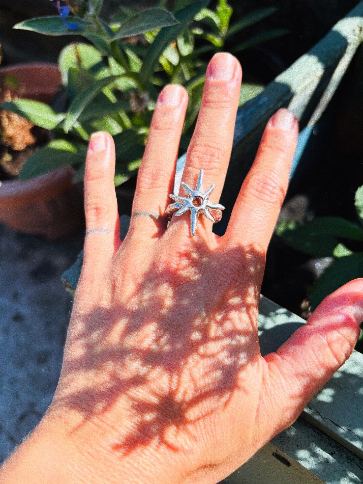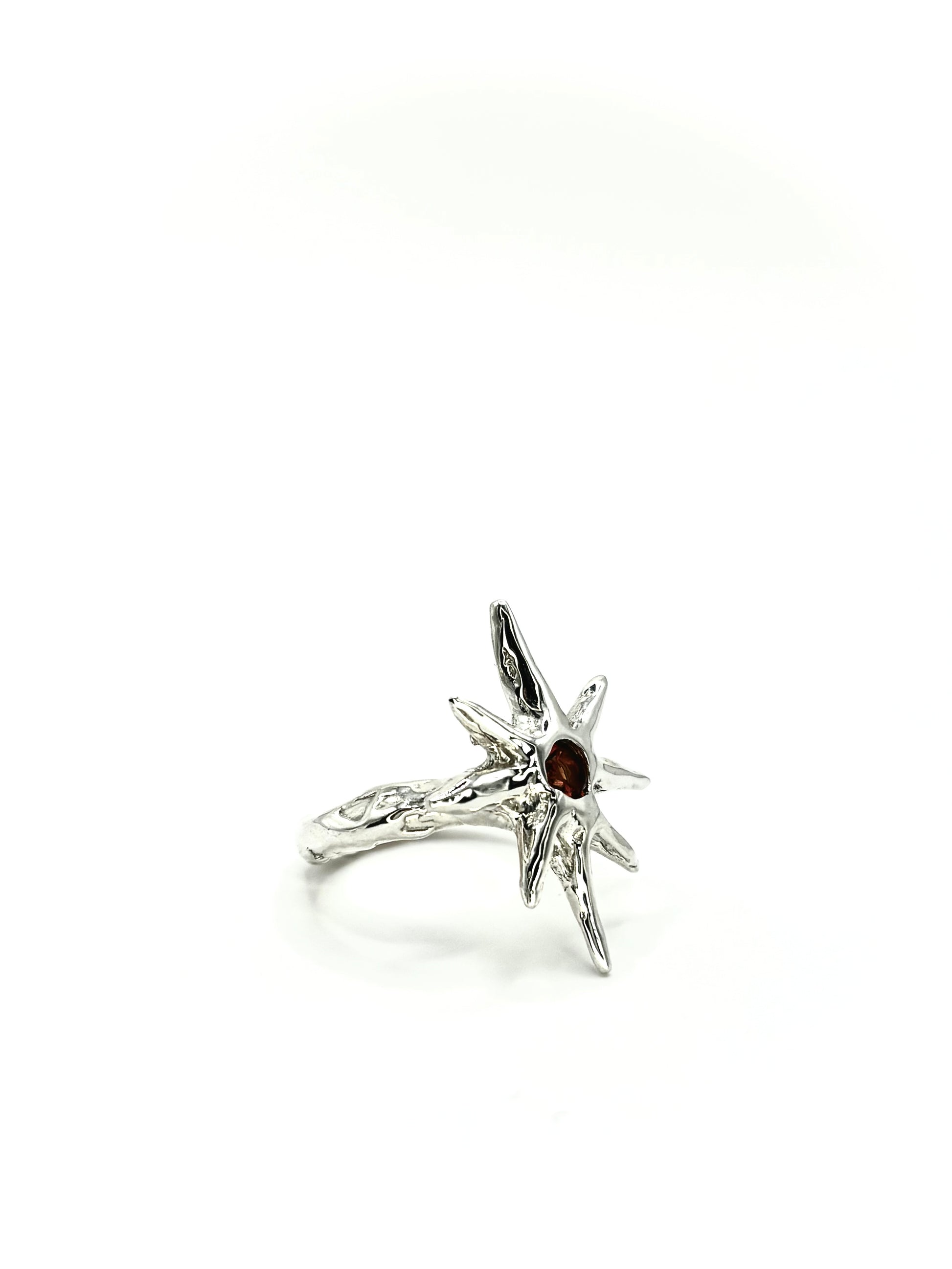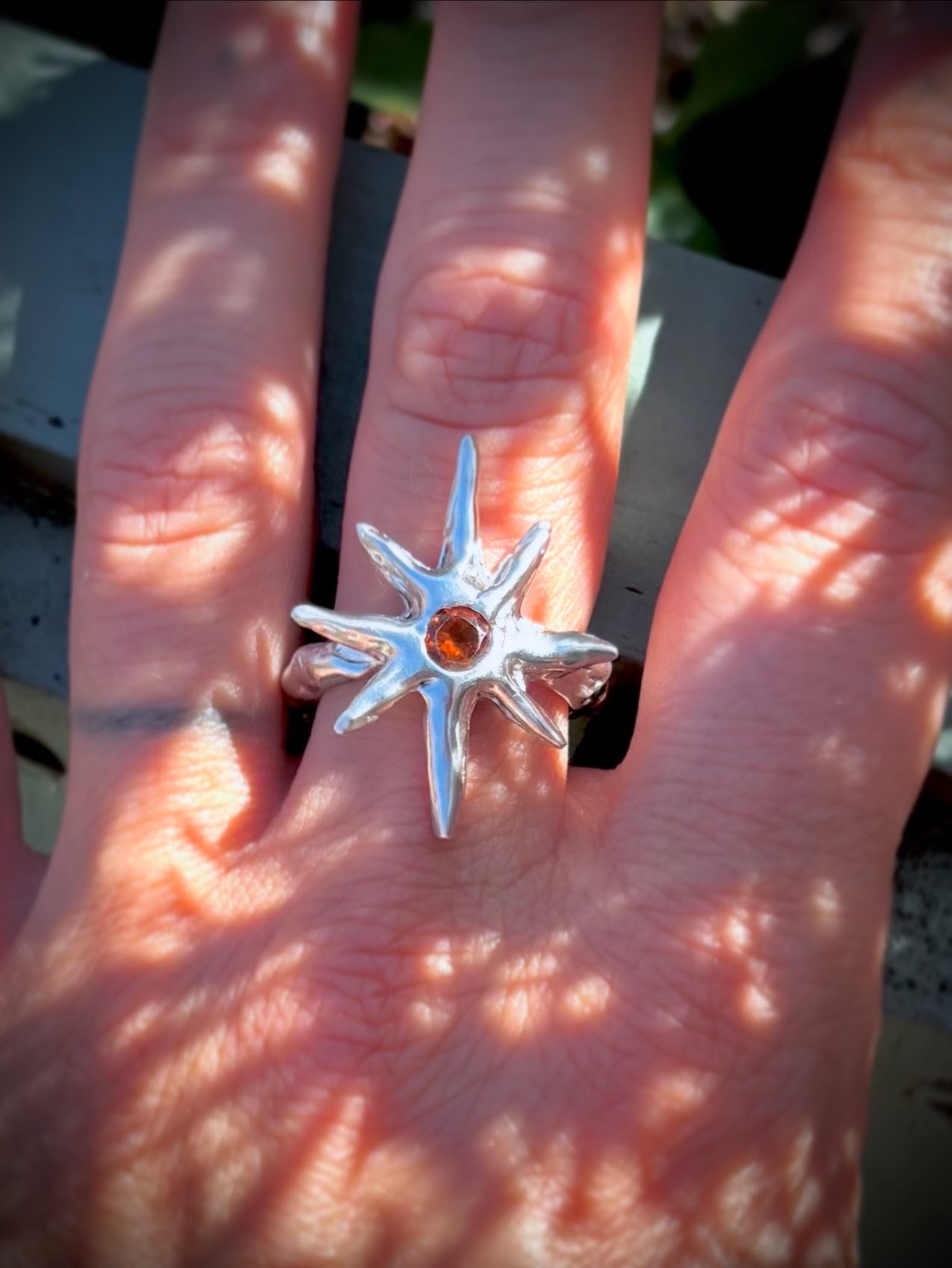 Mischievous sterling silver ring with cheeky spiked ends and an orange citrine centrepiece. Fair warning: it will catch on your jumper.
