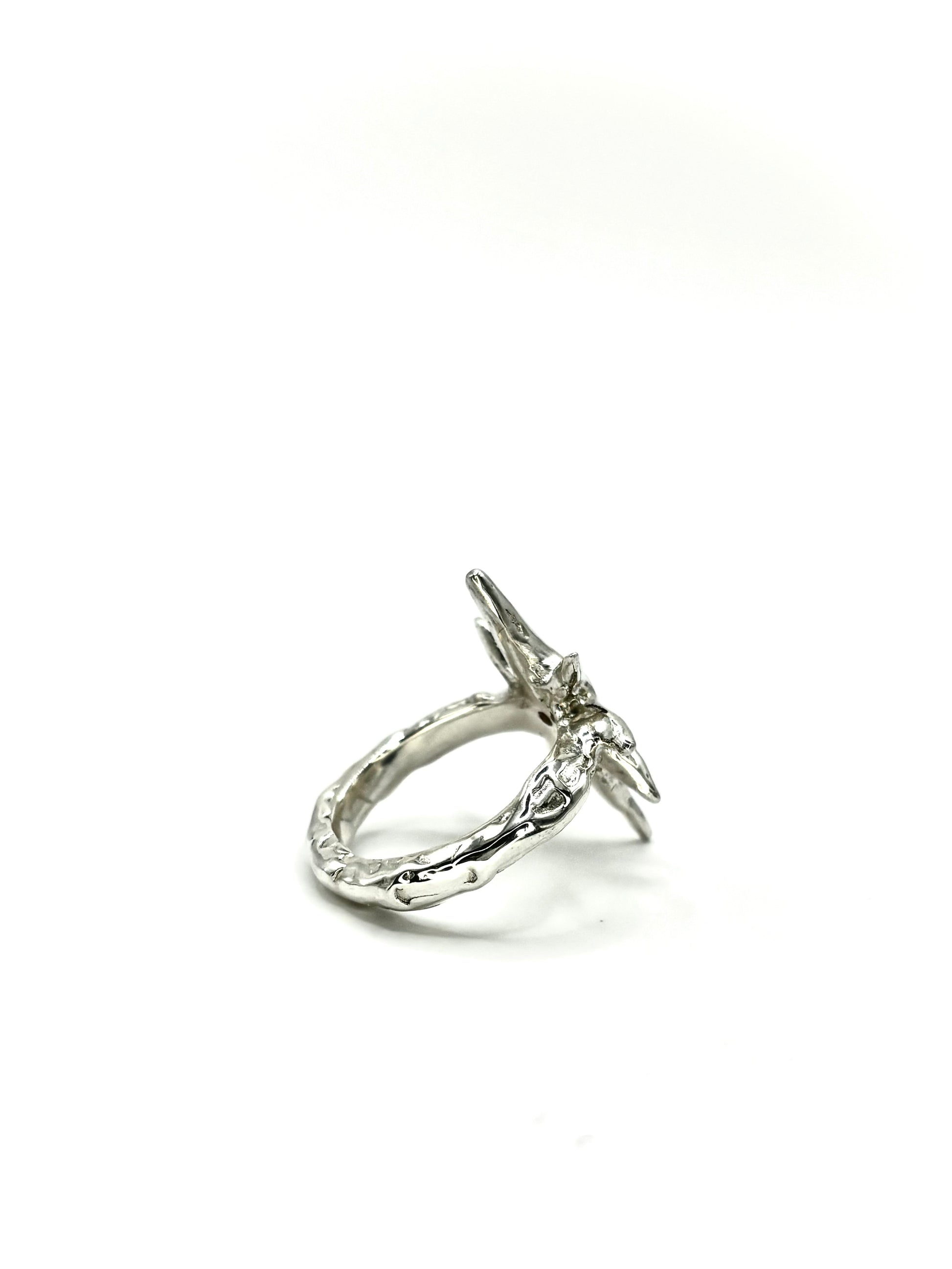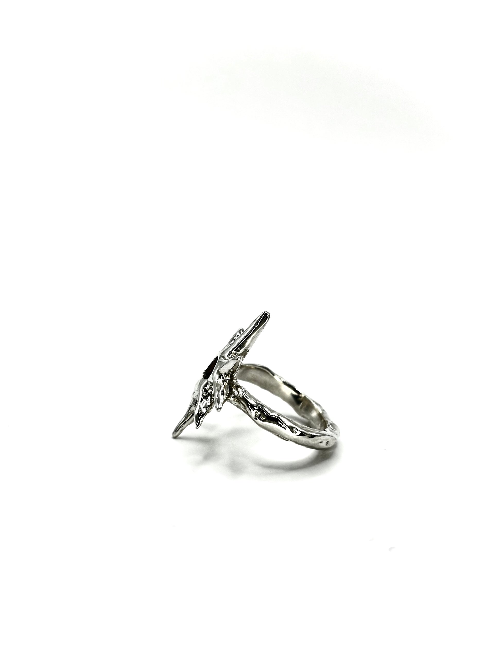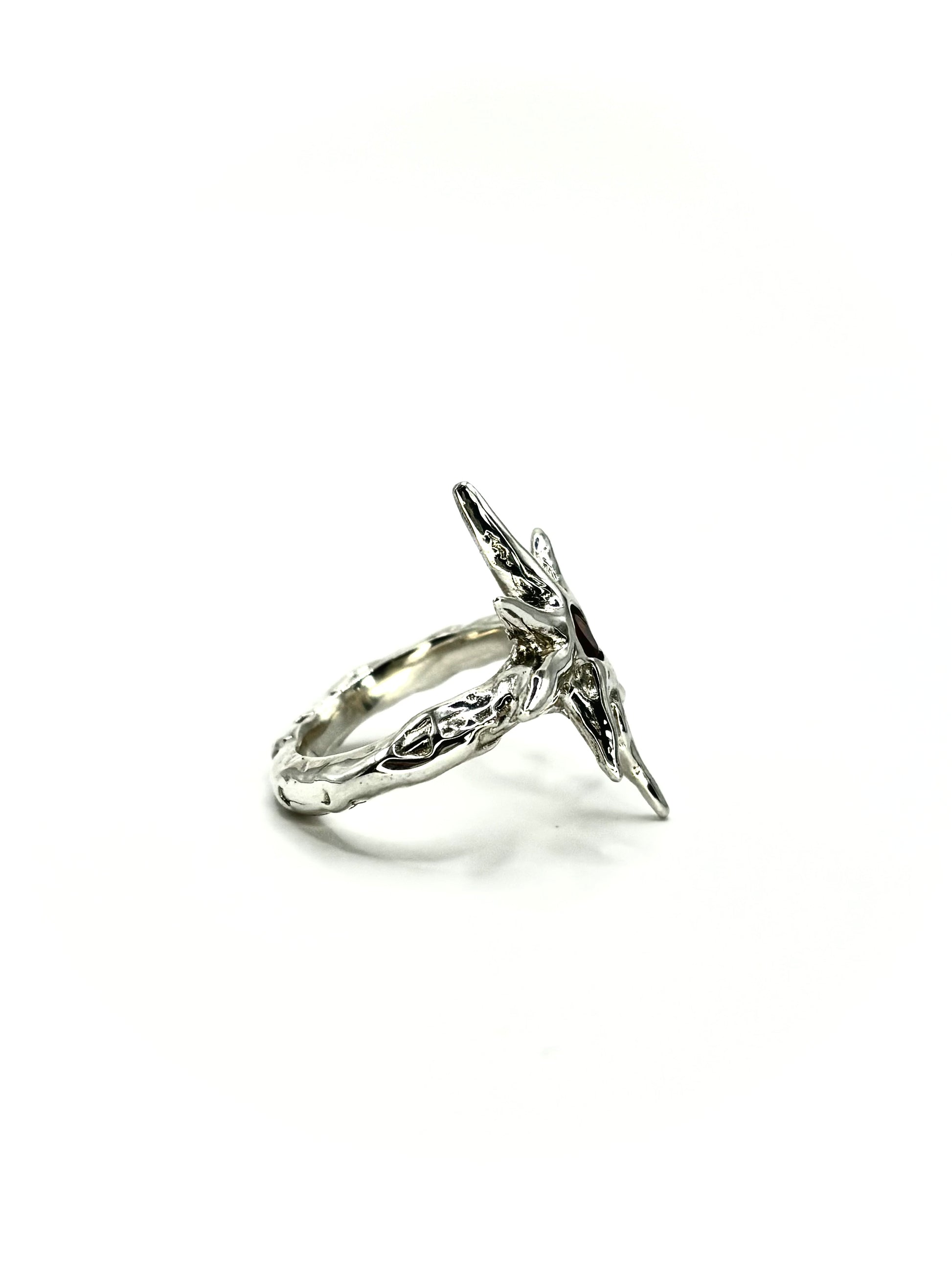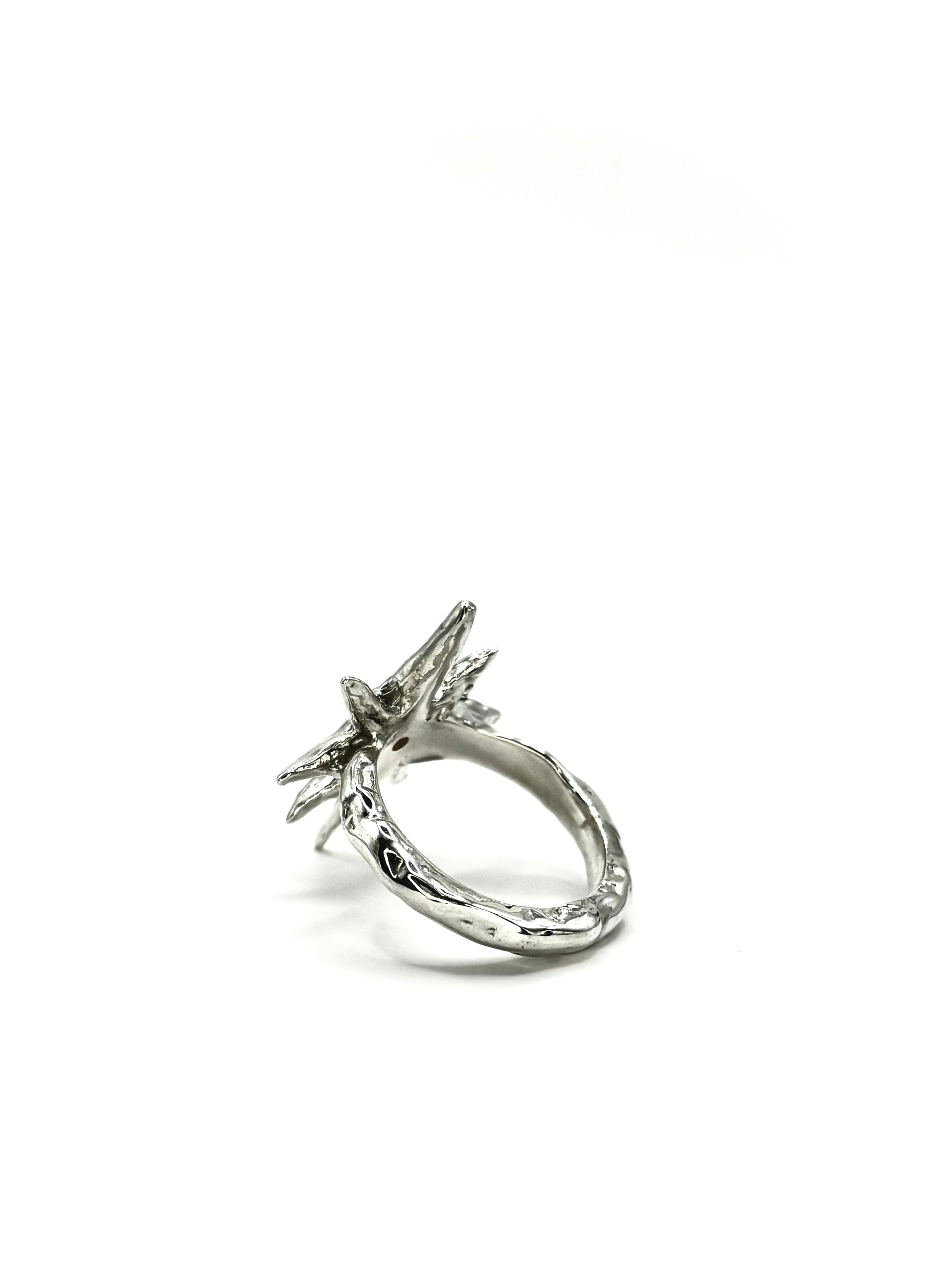 Mischievous sterling silver ring with cheeky spiked ends and an orange citrine centrepiece. Fair warning: it will catch on your jumper.
